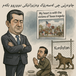 مەسرور بارزانی ئەوەندەی پەلەیە بە خێرایی سەرەخۆشیی لە بنەماڵەی قوربانییانی لافاوەکەی تێکساس دەکات و دەڵێت “دڵم لەگەڵ بنەماڵەی قوربانییەکاندایە لەم کاتە سەختەدا”، بەڵام لە هەمان کاتدا کەڕ بەرامبەر بە ئەو کارەساتە مرۆڤییە کە خۆی لە کوردستان دروستی کردووە. زیاتر لە شەست ڕۆژە مامۆستایان و کارمەندانی حکومەت موچەکانیان وەرنەگرتووە، بە هەزاران بنەماڵە لە دۆخی ئابووری خراپدان، بەڵام ئەو کەسەی کە لە چرکەساتێکدا دەتوانێ نامەی هاوخەمی بنووسێت بۆ ئەمریکا، ناتوانێت تەنانەت چارەسەرێکی سادە بۆ هاوڵاتیانی خۆی دابین بکات، چونکە چێی وایە دەبێت خەڵک لێی بپاڕێتەوە بێ ڕاگا لەوەی کە خۆشی بوکەڵەیەکی دەستی ئاغاکانێتی هەر لە زاری خۆیانەوە کە ووتیان کاتێک کە هەست بە خراپی دۆخ دەکەن لە نێو ماڵەکانیشیاندا ناخەون لەبری ئەوە ئۆتۆمبێل و ئەشکەوتەکان دەکەنە لانکەیان، ئەم دۆخە نیشاندەری ئەوەیە کە کارەساتی سروشتی لە تێکساس بۆ ئەو گرنگترە لە بێ نانی و ماڵوێرانی گەلەکەی کە خۆی لە کوردستان بەرهەمی هێناوە.