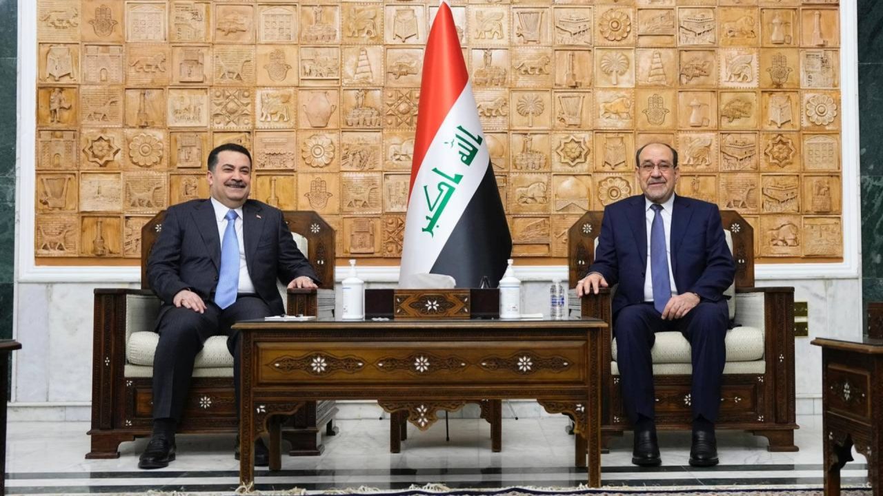 نوری مالیكی سەرۆكی هاوپەیمانی دەوڵەتی یاسا و محەممەد شیاع سودانی سەرۆكی حكومەتی عێراق و هاوپەیمانی بنیادنان و گەشەپێدان كۆبوونەوە بۆ…
